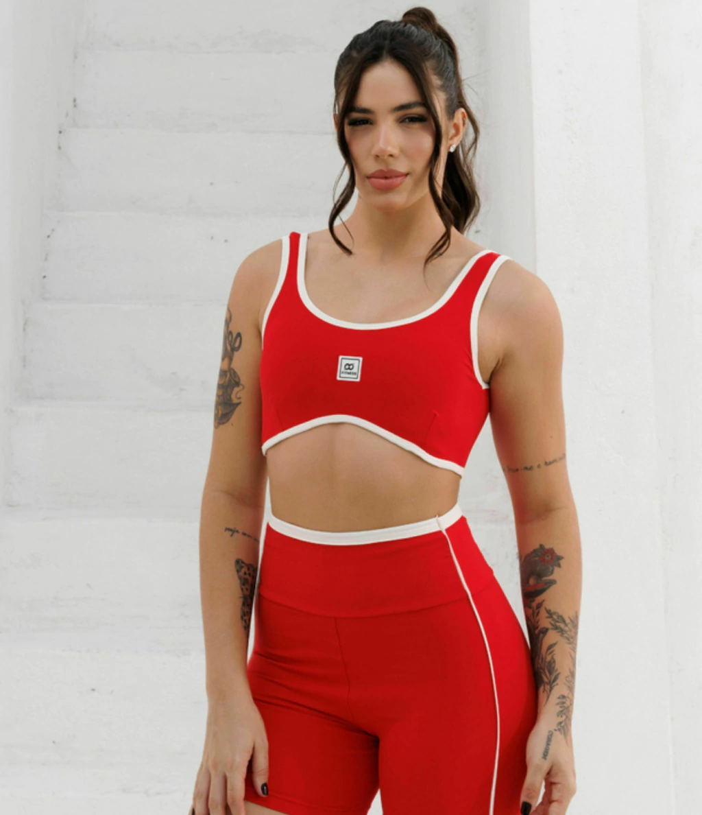 Top com bojo removível, alças largas e ótima sustentação, short com cós alto e zero transparência